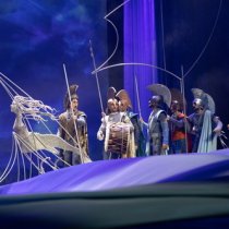 Τα κοστούμια, οι προβολές, τα σκηνικά είναι προσεγμένα στην λεπτομέρεια όπως αρμόζει σε μια παράσταση που απευθύνεται στα παιδιά.